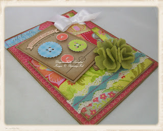 I used some of my newer "Authentique" paper that I got from Ellen's store. You can check it out with the link on my sidebar. She always has fun stuff. For those of you who know me, I like to mix a lot of prints and this card is no exception. I kept all of the embellishments as masculine as possible, from the jute twine to the felt stitched ribbon. No bow in sight!