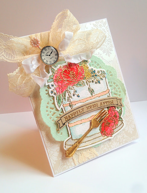 I thought the mint colored doily was a perfect backdrop for the cake image...something straight from the bakery! Thanks for fluttering by!