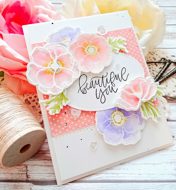 I am just going to be completely honest with you up front! This is one of those releases that is so jam packed with goodness that you won't want to stop playing! Literally, I have so many ideas that I can't wait to try! The possibilities are endless and I just scratched the surface! To begin, I played around with the newly released Hanging Florals stamp set paired with one of the new essentials being showcased today; Pretty Frames 2 die.