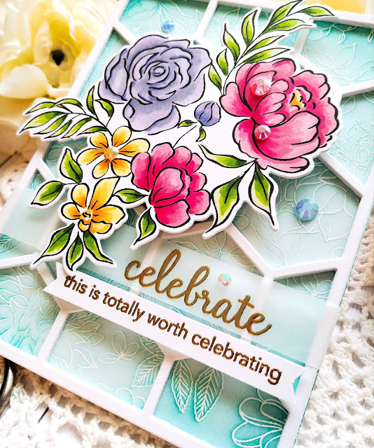 This little piggy was calling my name for this 3rd and final card. I kept the background the same as the previous 2 cards, but stamped it in bright blue instead! I thought the blue was a nice contrast to the pink pig!
