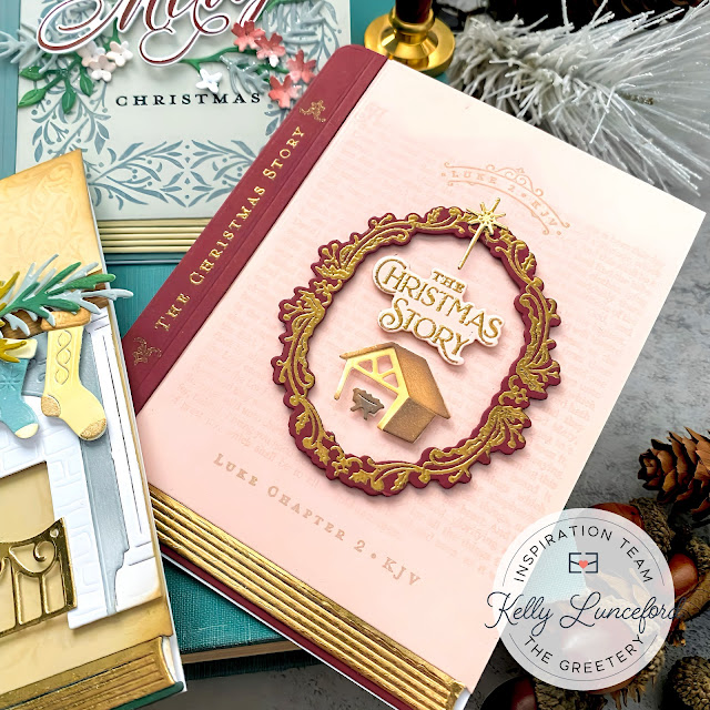 My second book card uses the new The Christmas Story stamp/die set paired with the older Christmas Time in the Country Die to create the cute stable/manger elements.
