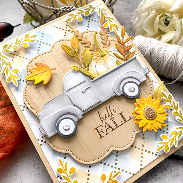 I wanted to create additional texture that you might find in a textile, so I used the Pierced Plaid Pierce Plate for the background. I couldn't resist adding the cute little cat to the rug!